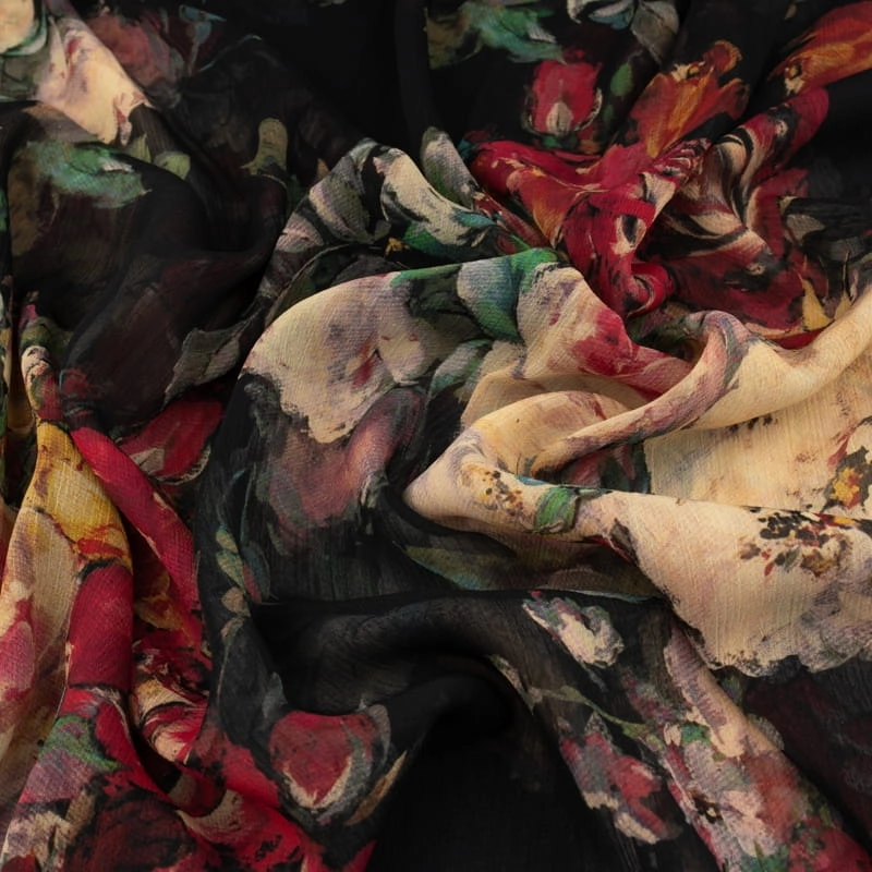 Chiffon gemalte Blumen schwarz – zart, elegant, vielseitig