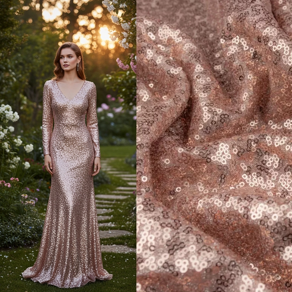 Design: Zart glänzender Tüll mit schimmernden Pailletten in Roségold – für einen edlen Look