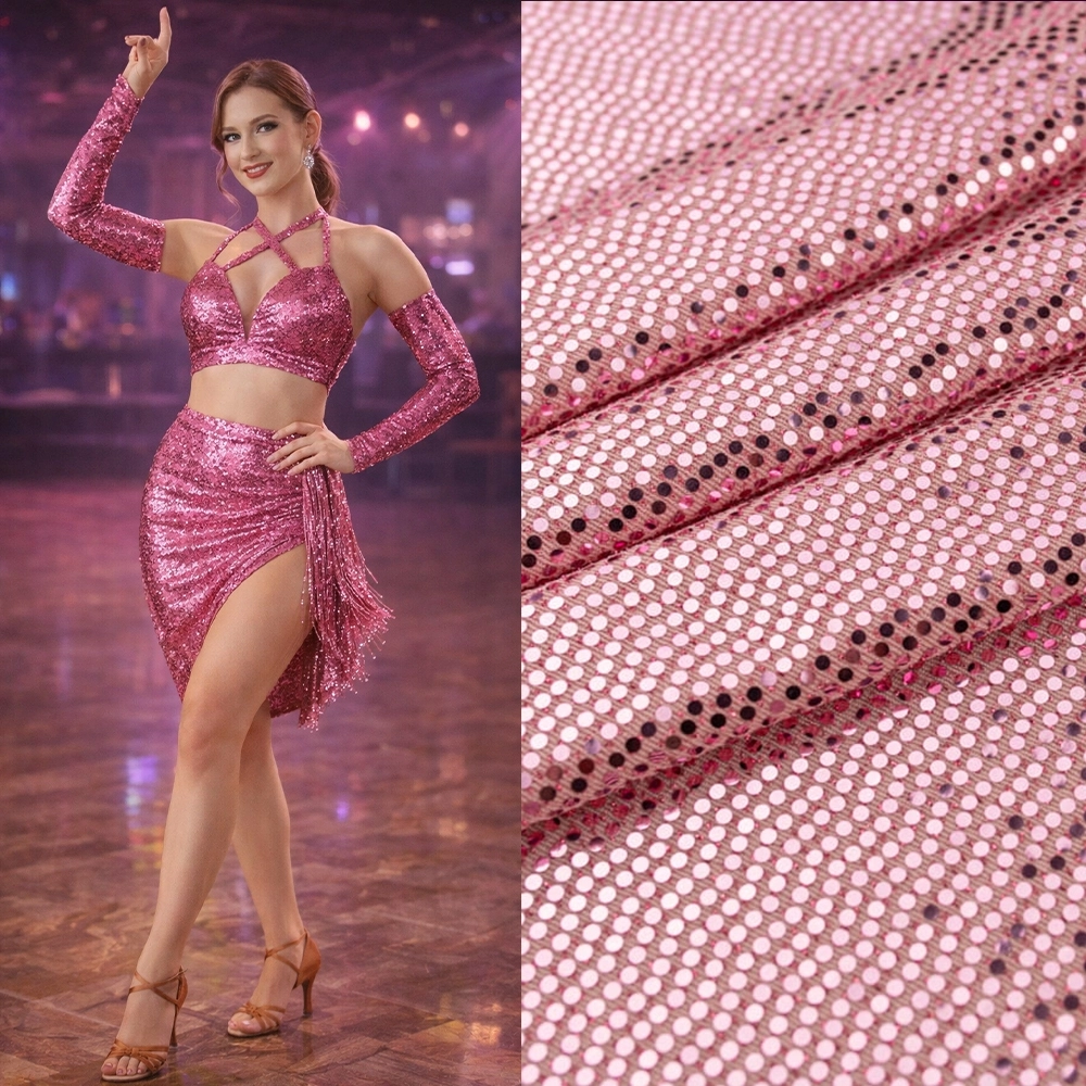 Stretch Paillettenstoff lachs – Glanz für besondere Momente