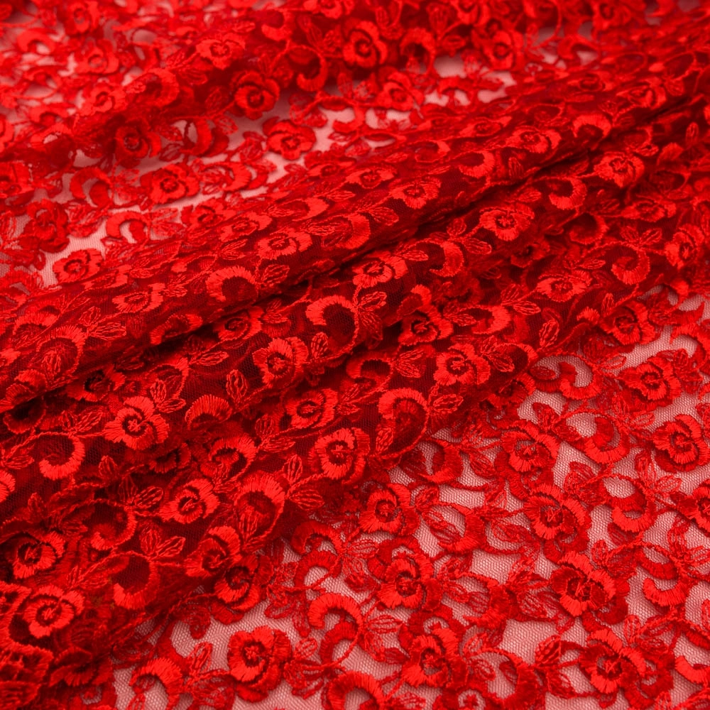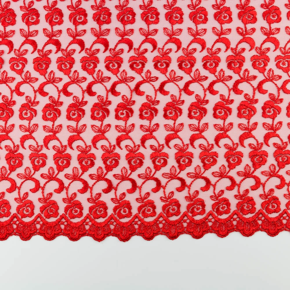 Guipure-Spitze Blumenmuster und Bogenkante rot