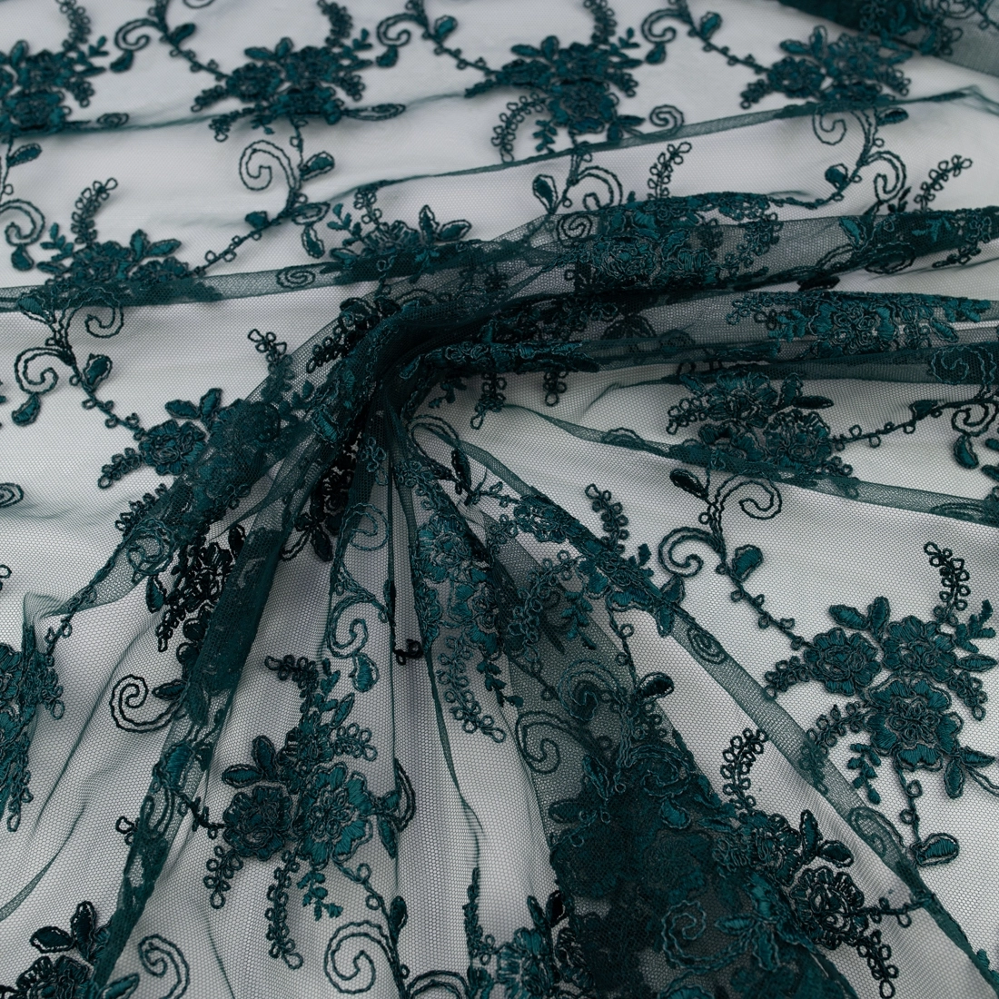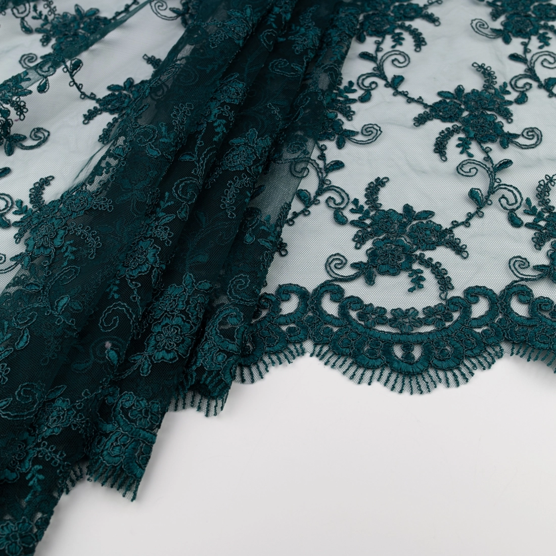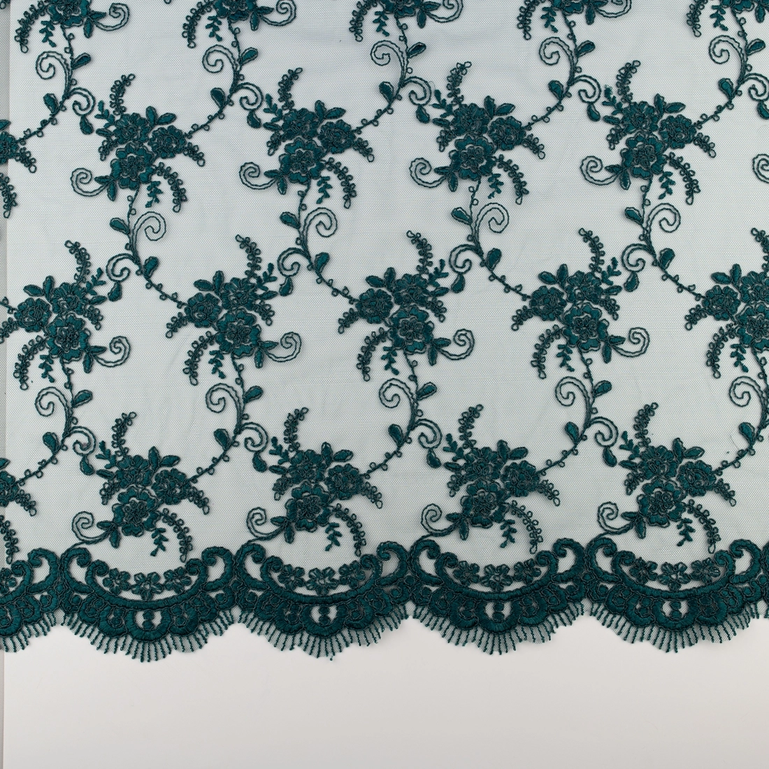 Spitzenstoff Blumen und Bogenkante dunkelgrün - Eleganz für besondere Anlässe