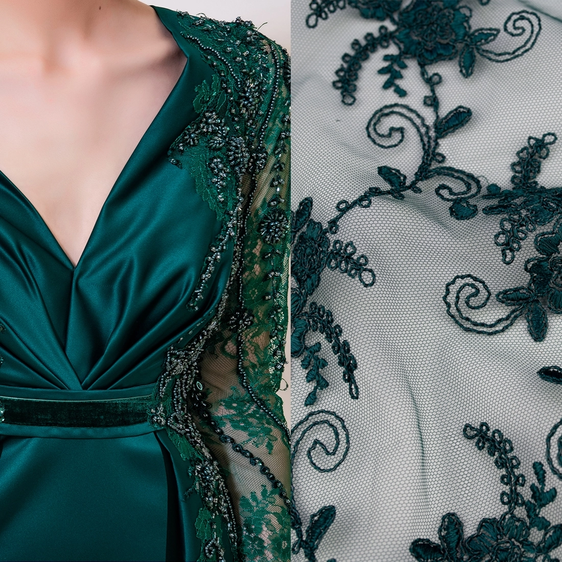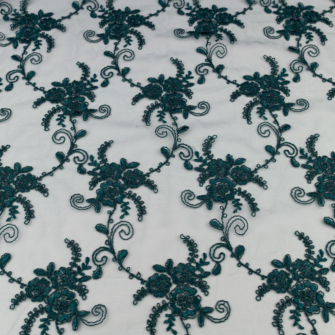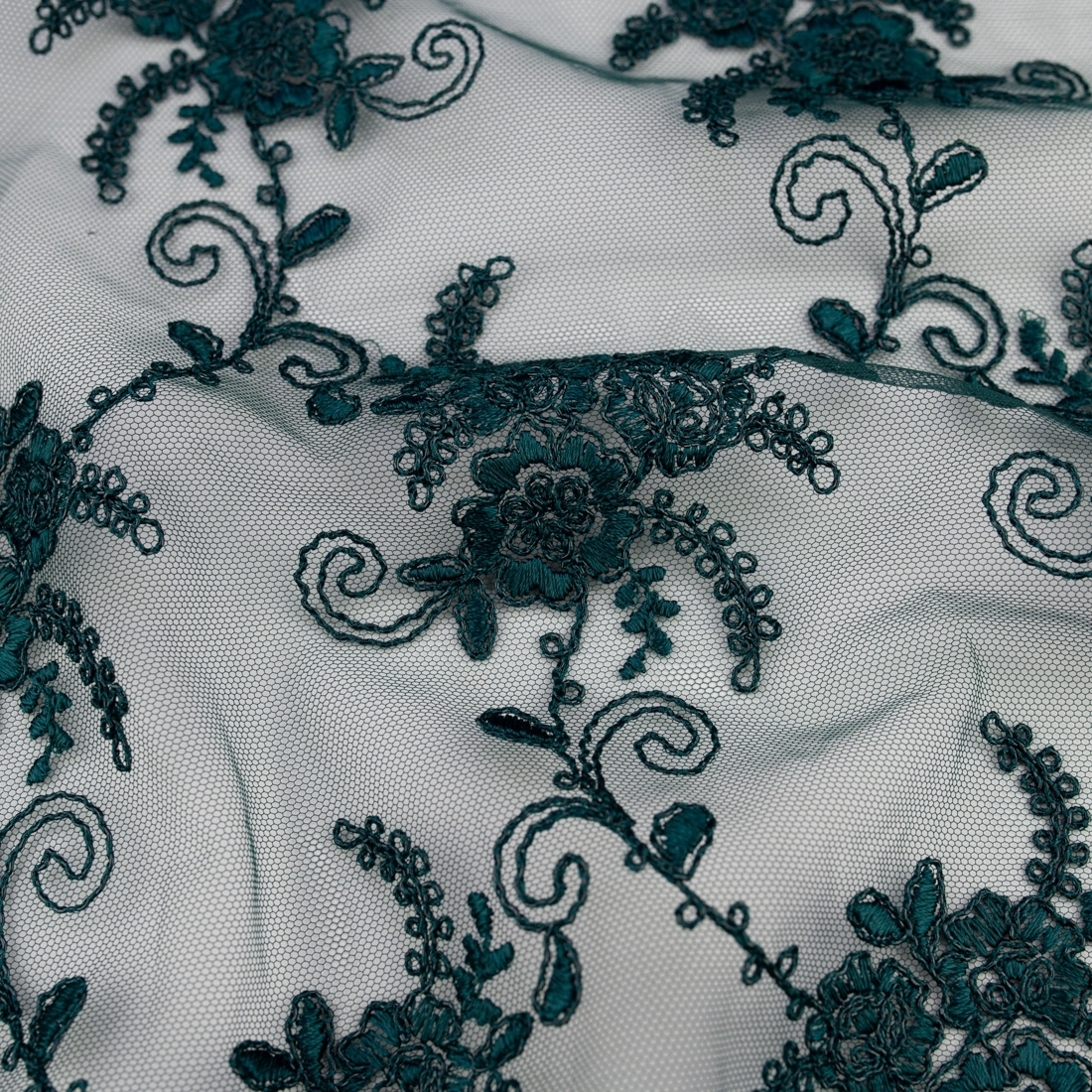 Spitzenstoff Blumen und Bogenkante dunkelgrün - Eleganz für besondere Anlässe