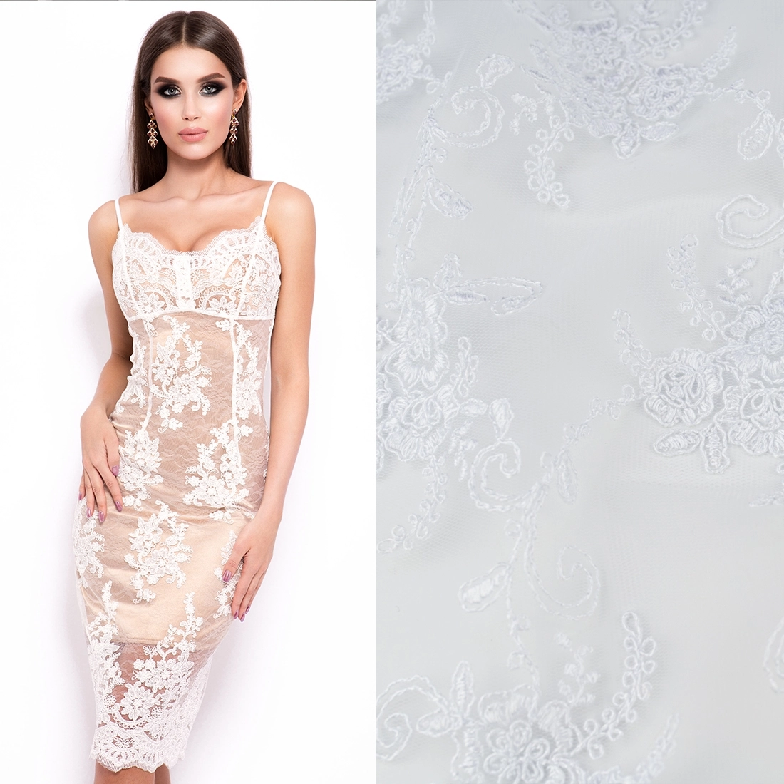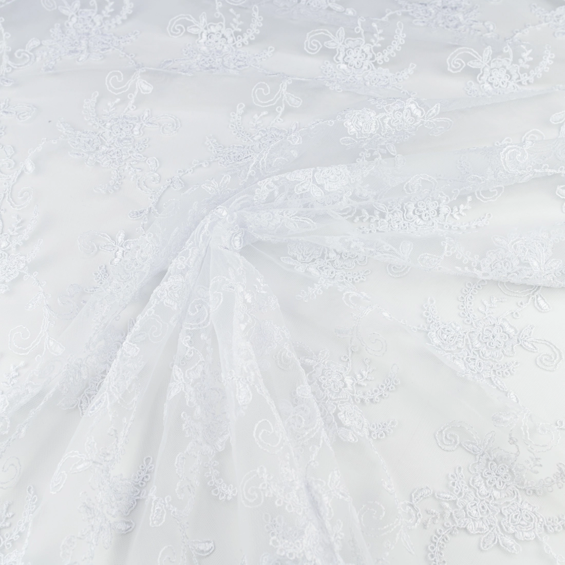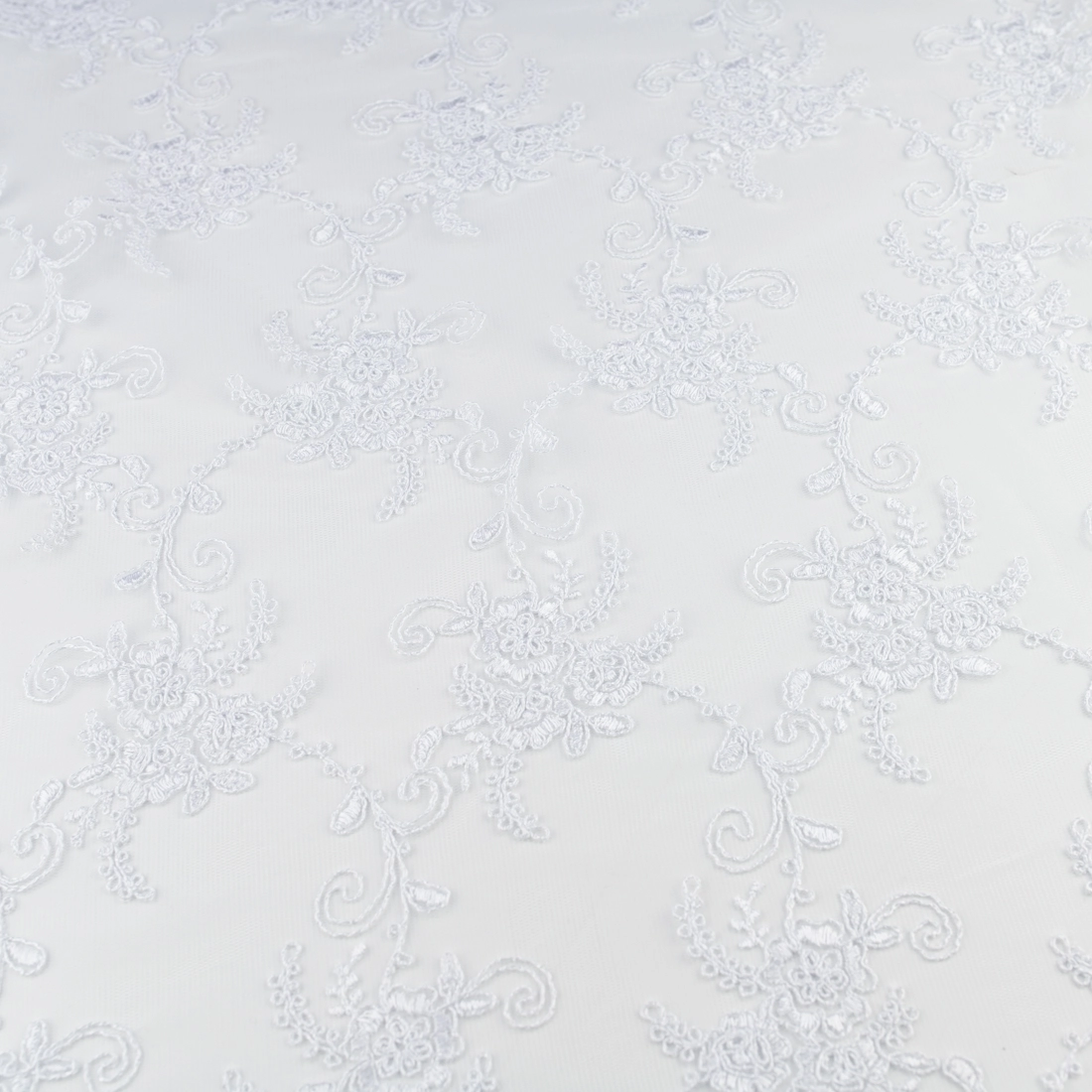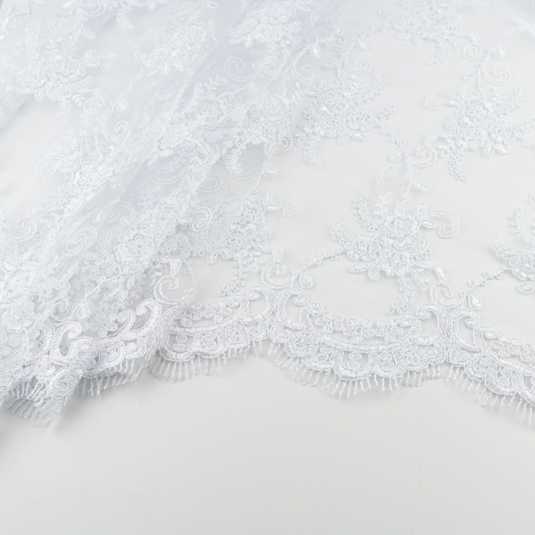 Spitzenstoff Blumen und Bogenkante weiß - Eleganz für besondere Anlässe