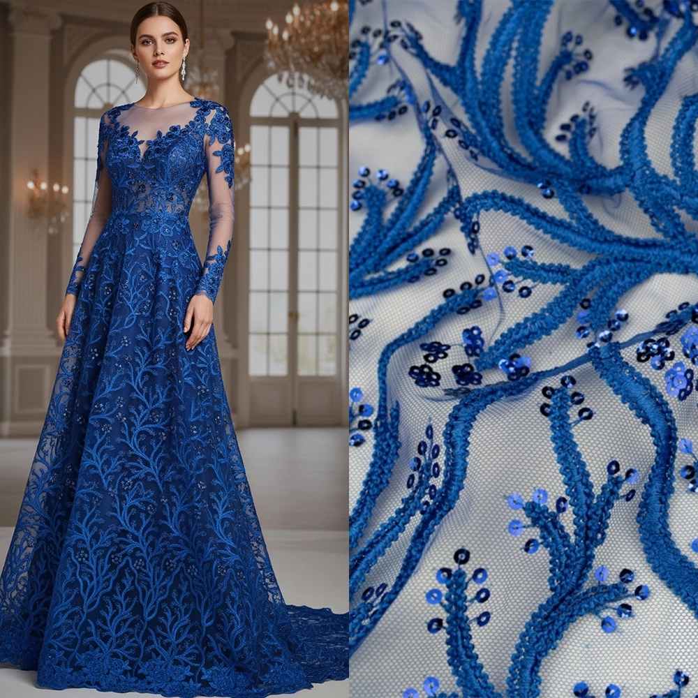 Spitzenstoff mit Pailletten und Bogenkante königsblau - Eleganz für besondere Anlässe