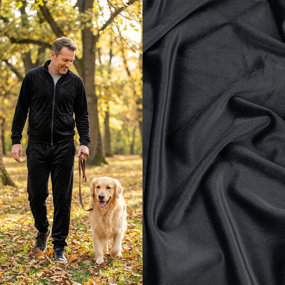 Jetzt Ihr Projekt starten und dem Design den luxuriösen Touch dieses Stretchsamt Nicki schwarz geben – bestellen Sie heute.