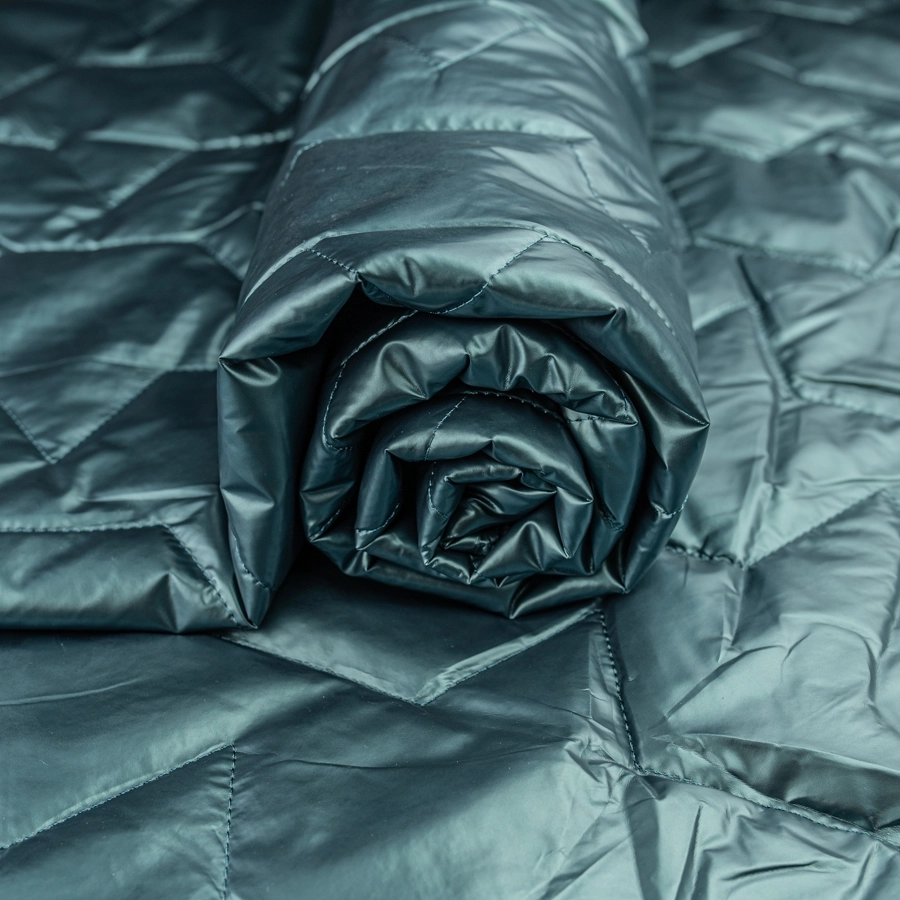 Steppstoff wattiert grau/grün Metallic