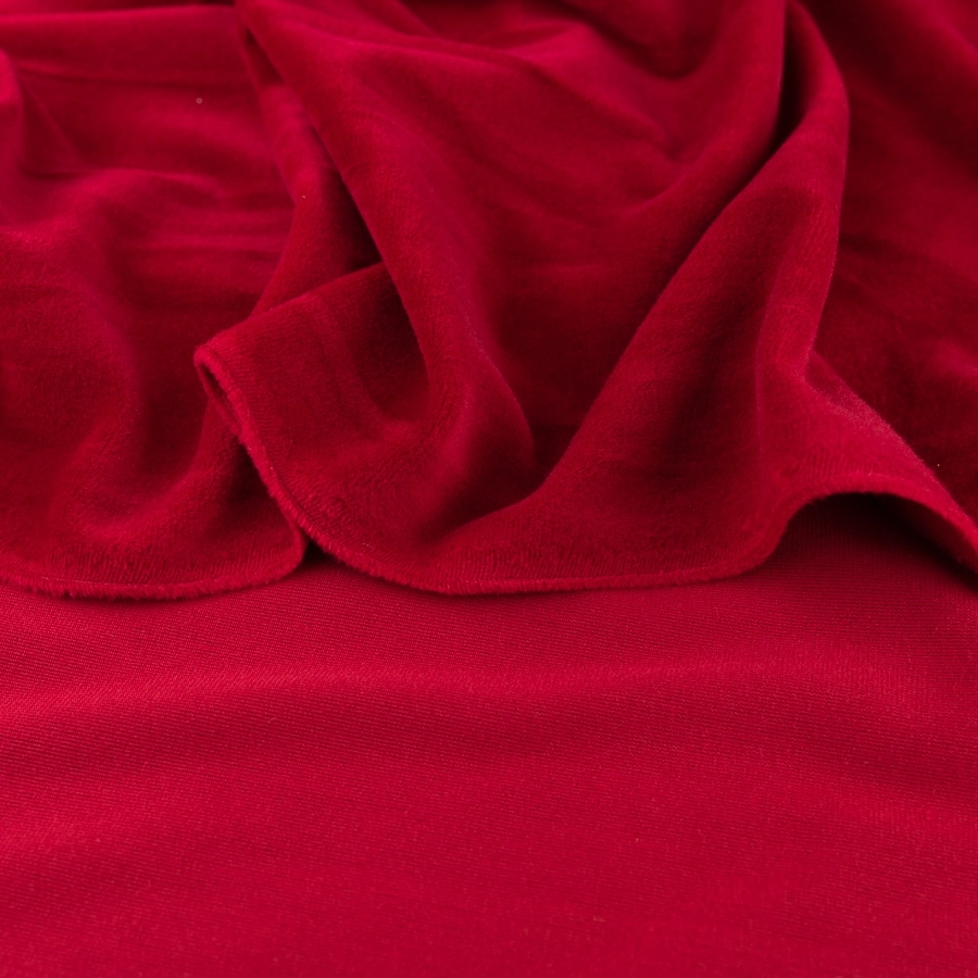 Jetzt Ihr Projekt starten und dem Design den luxuriösen Touch dieses Stretchsamt Nicki rubinrot geben – bestellen Sie heute.