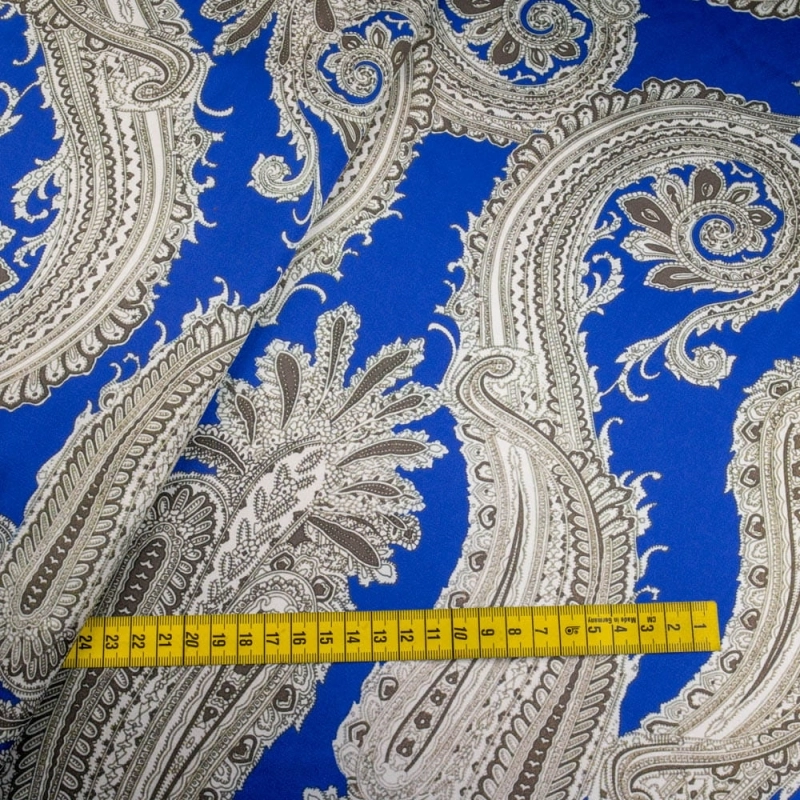 Stretch Satin grauer Paisley blau – Eleganz trifft auf Elastizität