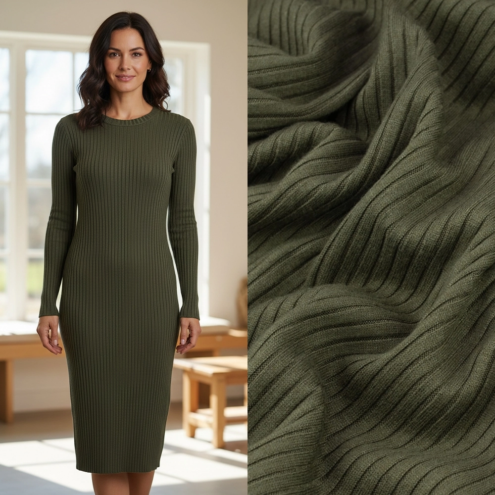 Viskose-Rippenstrick oliv