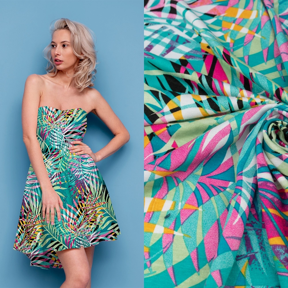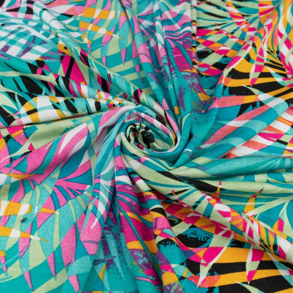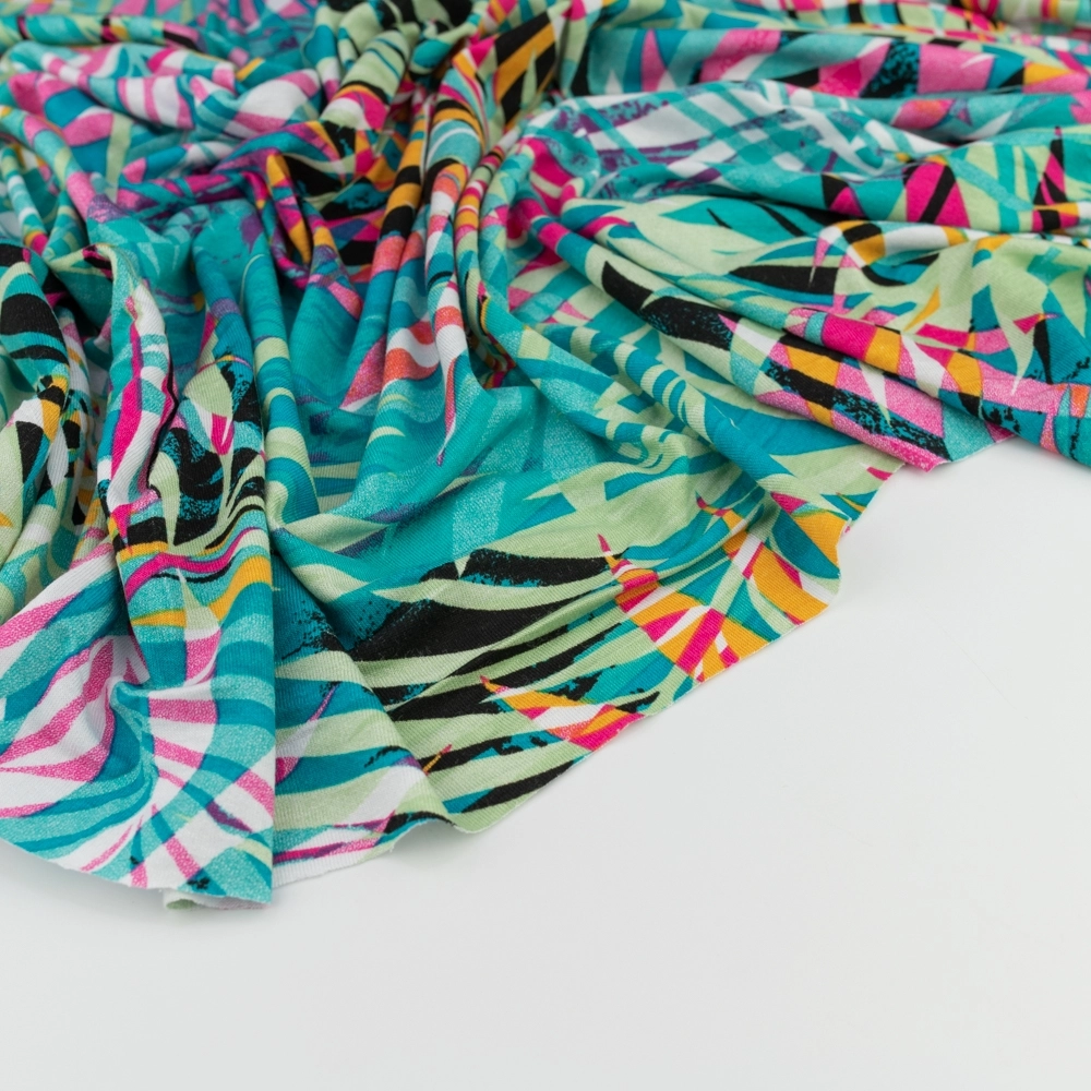 Viskose-Strickstoff Palmenblätter türkis