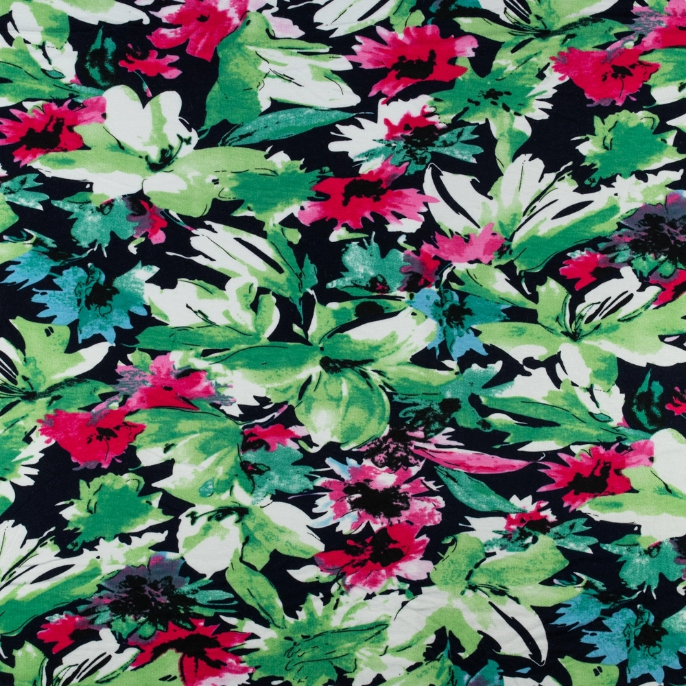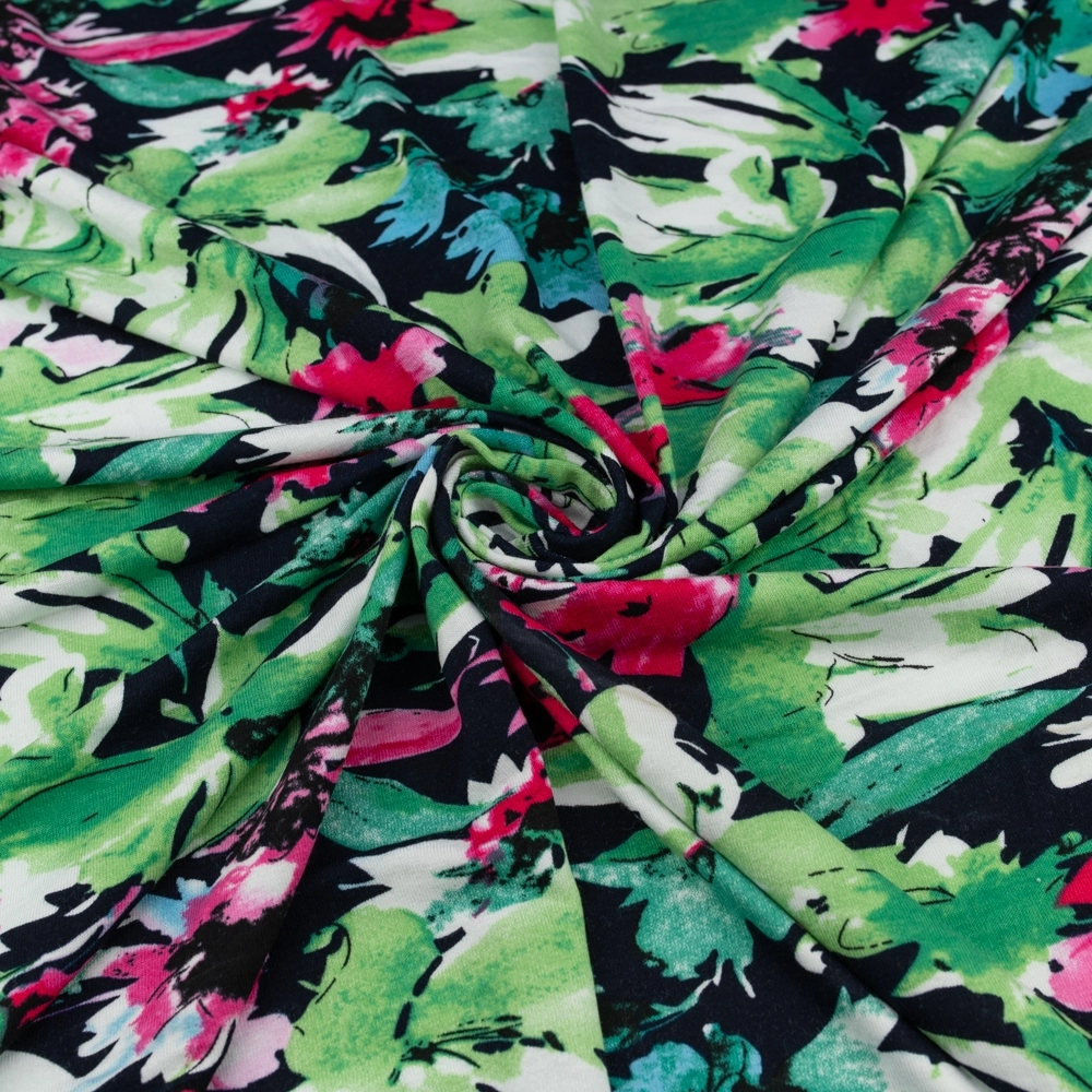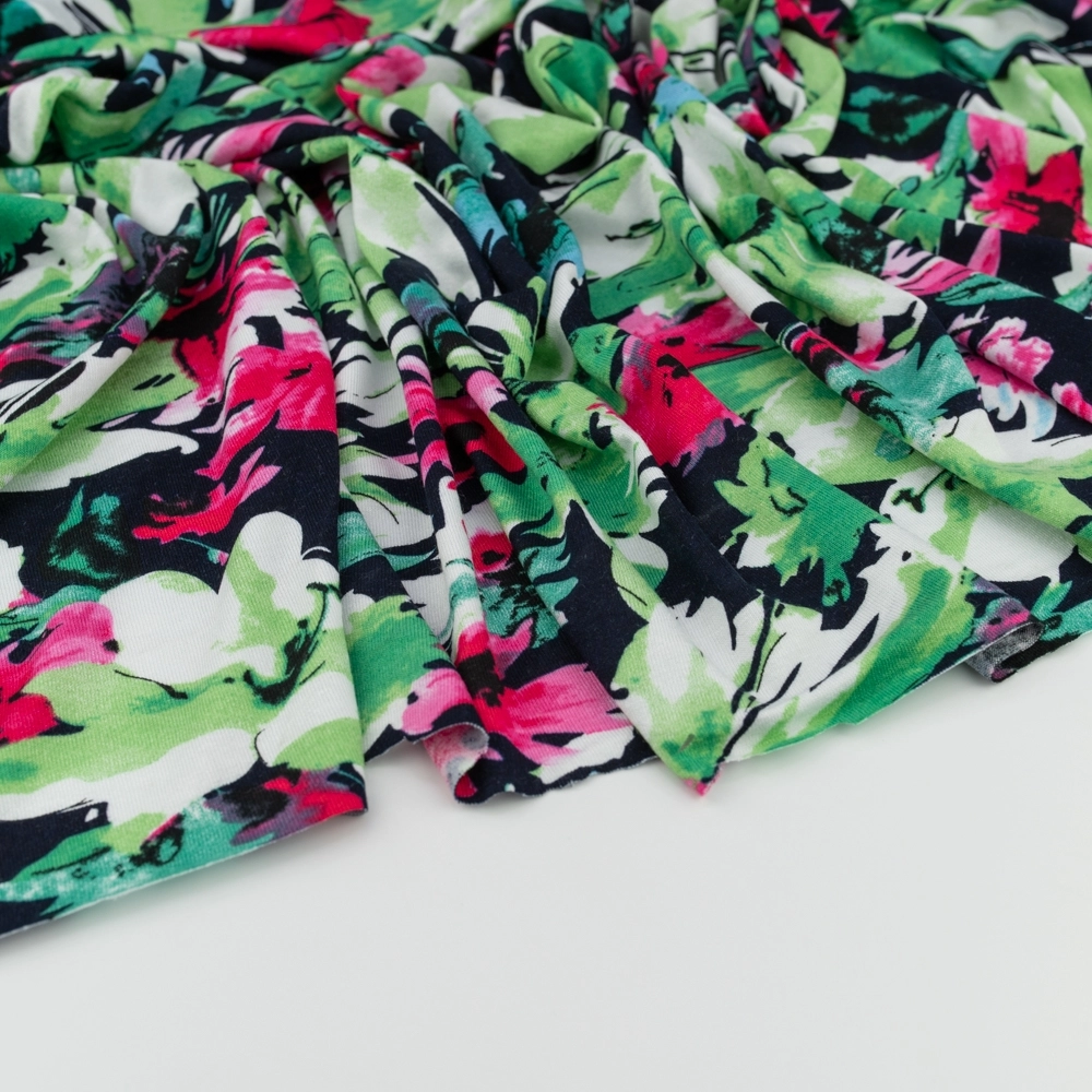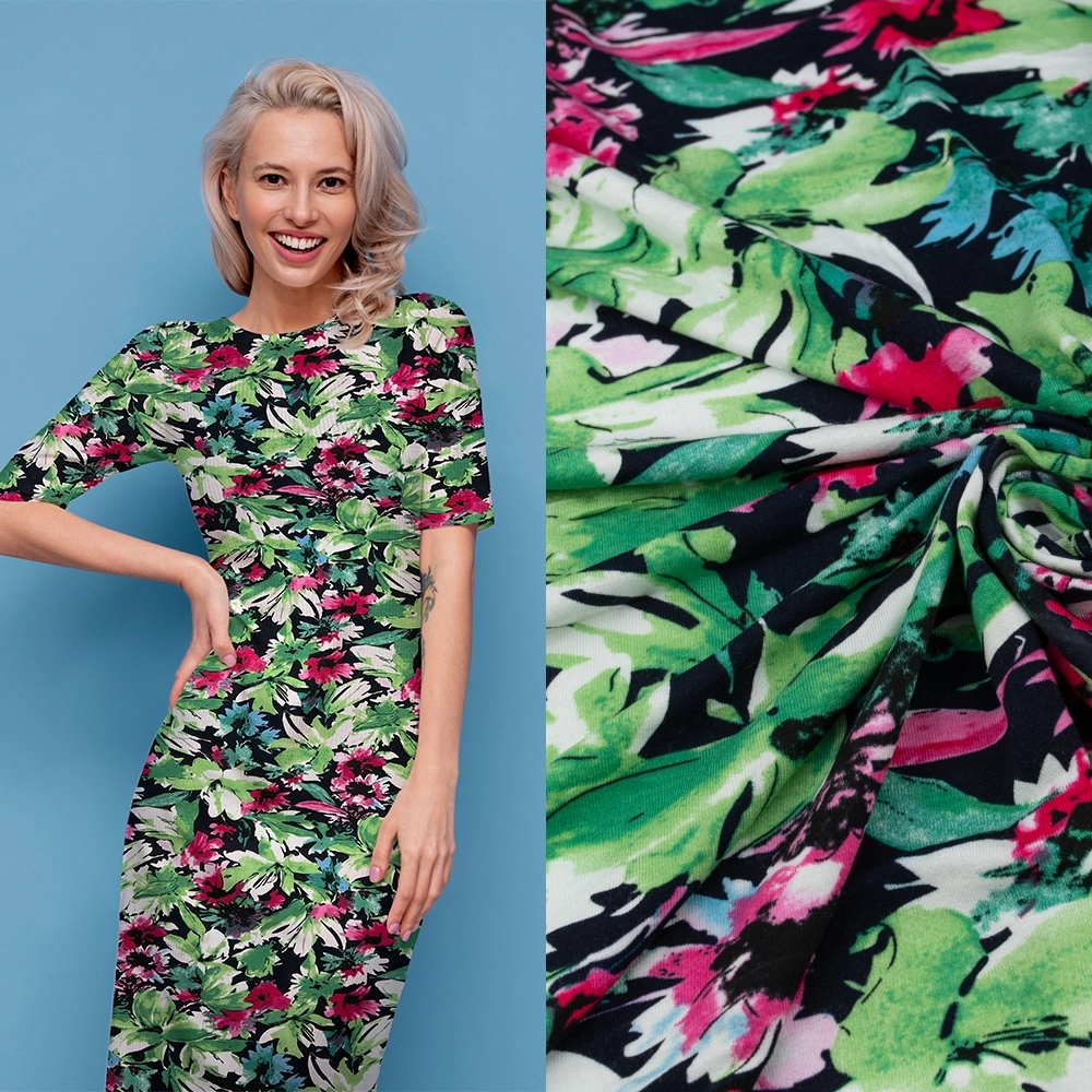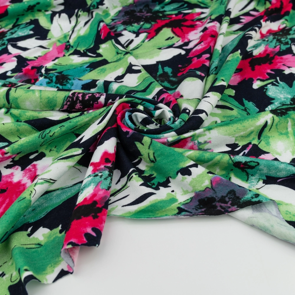 Viskose-Strickstoff Blumen grün