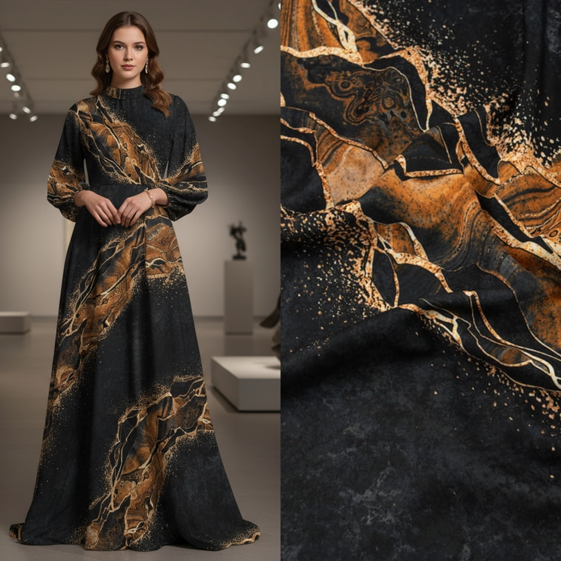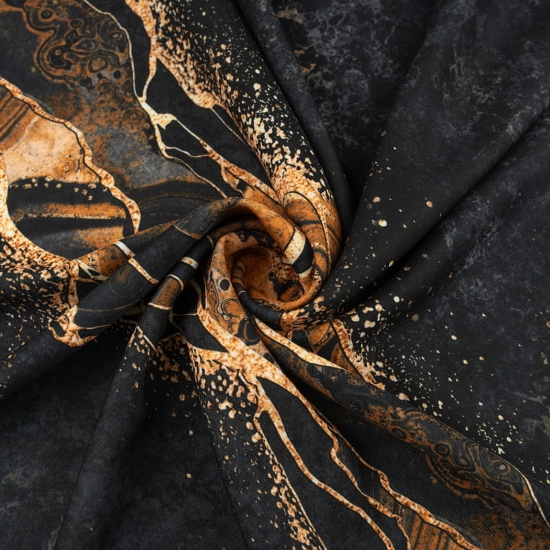 Dieser hochwertige Viskose Twillstoff Abstrakter Malachit braun überzeugt mit seiner weichen, angenehmen Textur und seinem klassischen, diagonalen Gewebe. Der Stoff eignet sich perfekt für leichte Sommerkleidung wie Blusen, Kleider und Röcke, bietet jedoch auch hervorragende Möglichkeiten für anspruchsvolle Modekreationen.